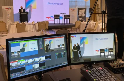 Además del alquiler y el montaje de todo el equipamiento audiovisual trabajamos para empresas e instituciones que necesitan realizar un evento global en el que se requiere una coordinación de diferentes servicios