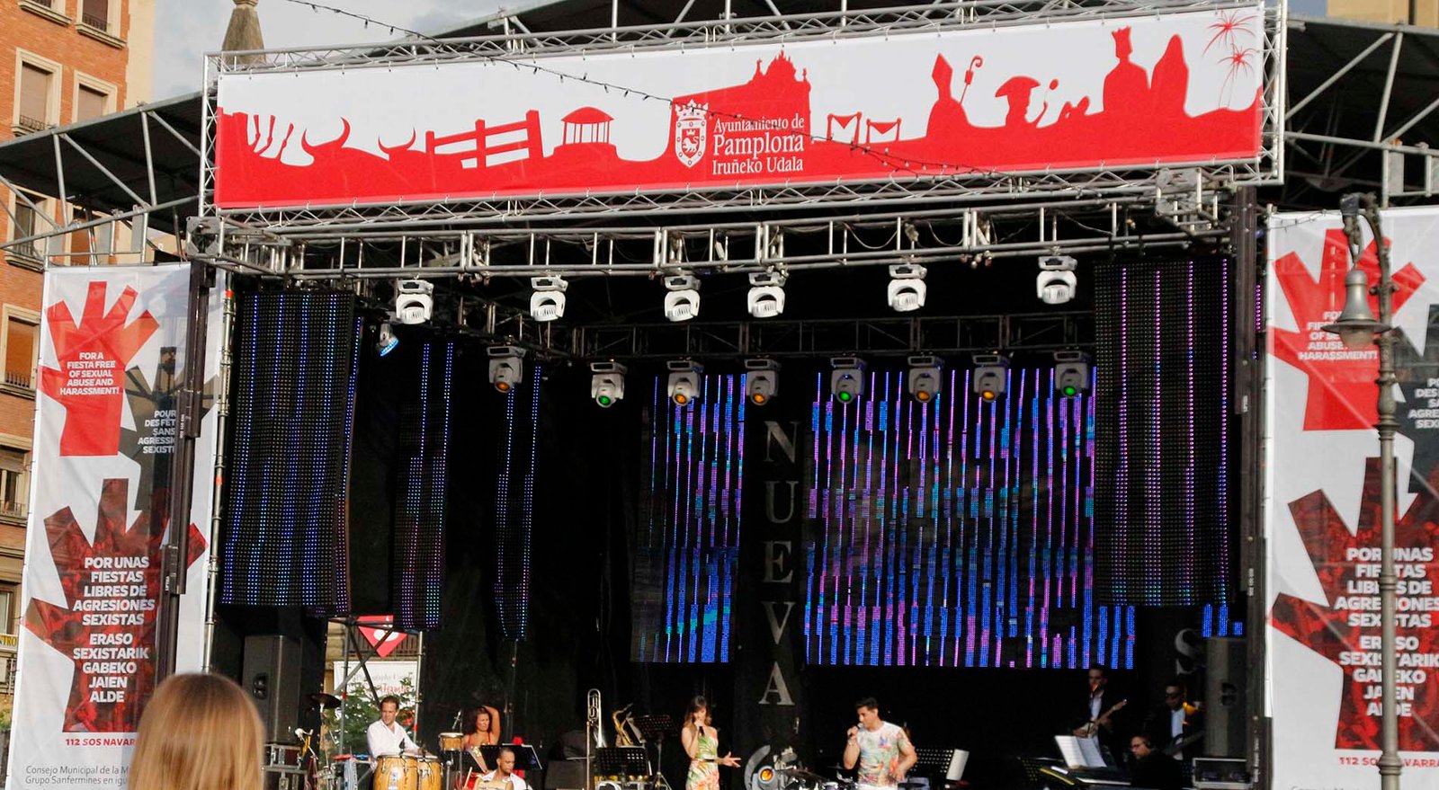 En la Plaza del Castillo acogerá las actuaciones musicales que se produzcan entre el 6 y el 14 de julio. La infraestructura para los conciertos de la Plaza del Castillo consta, entre otros elementos, de un escenario de 12 x 8 metros, zona trasera y de backstage, control de sonido en el quiosco de la plaza y vallado perimetral de esos recintos. El año pasado más de 140.000 personas disfrutaron de las verbenas en horario doble con sesiones a las 19 y a las 23.30 horas, excepto el 14 que solo hubo por la tarde.