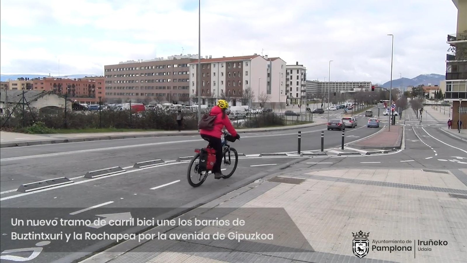 El Ayuntamiento de Pamplona ha finalizado las obras de puesta en marcha de un nuevo tramo de carril bici que ya une el barrio de Buztintxuri con la Rochapea, enlazando la vía ciclista que llega a la intersección entre la avenida Gipuzkoa y calle Ferrocarril con la de la calle Nazario Carriquiri. Esta nueva infraestructura permite que los ciclistas salven el cruce de Santa Engracia, que por sus características y su elevado volumen de tráfico suponía un paso peligroso.