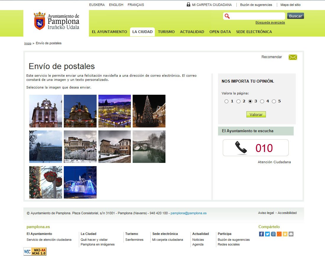 Home Ayto Pamplona Desde hoy estará activo en www.pamplona.es el sistema de postales digitales que permite felicitar las fiestas por e-mail con diez imágenes y mensajes personalizados
