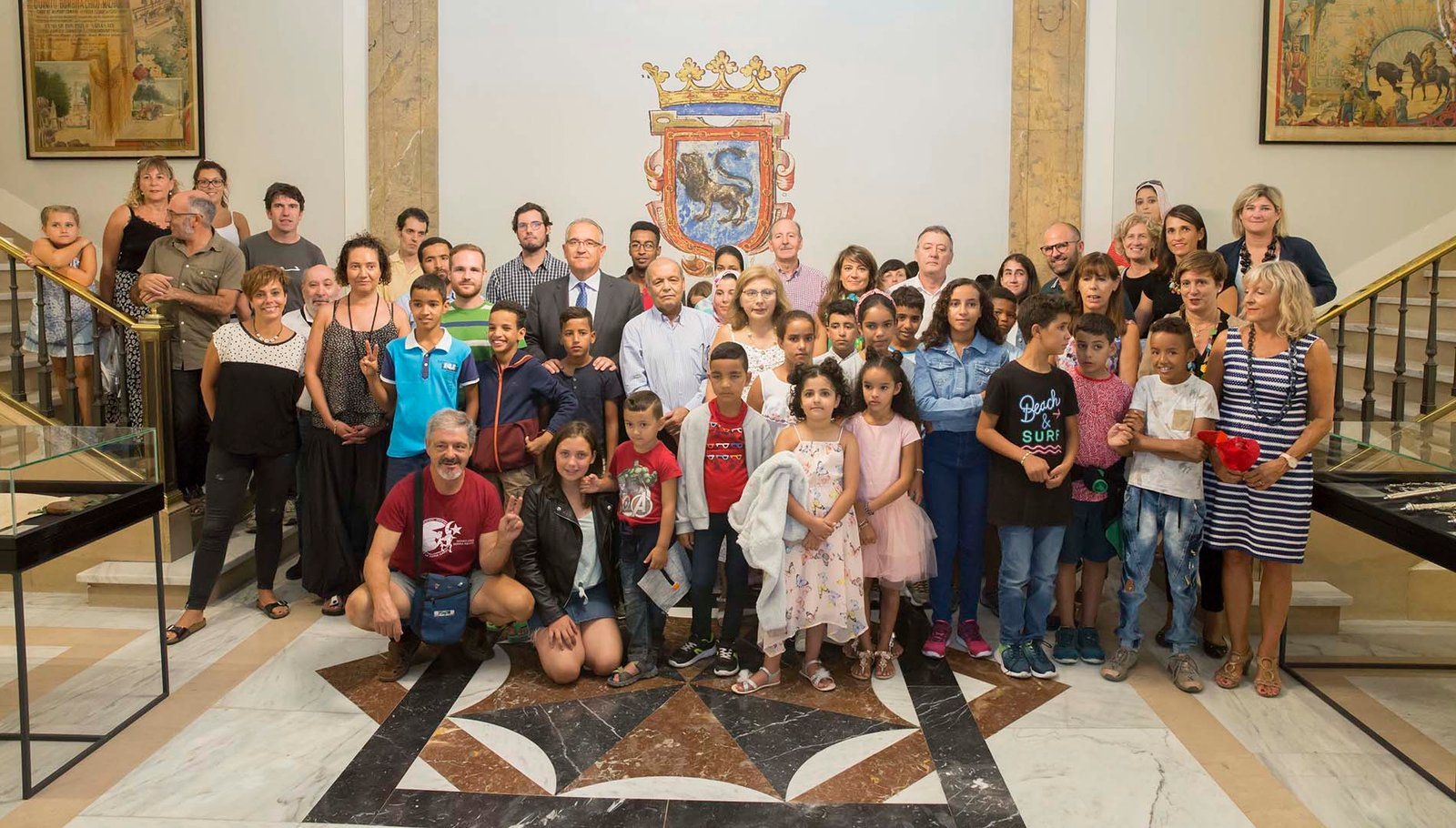 El alcalde de Pamplona, Enrique Maya, ha recibido este mediodía a una veintena de niños saharauis que están pasando el verano en Navarra, así como a sus familias de acogida. Los menores han estado arropados por el delegado del Pueblo Saharaui en Navarra, Badadi Benamar, el subdelegado, Mohamed Gailani, y miembros de la Corporación municipal.
