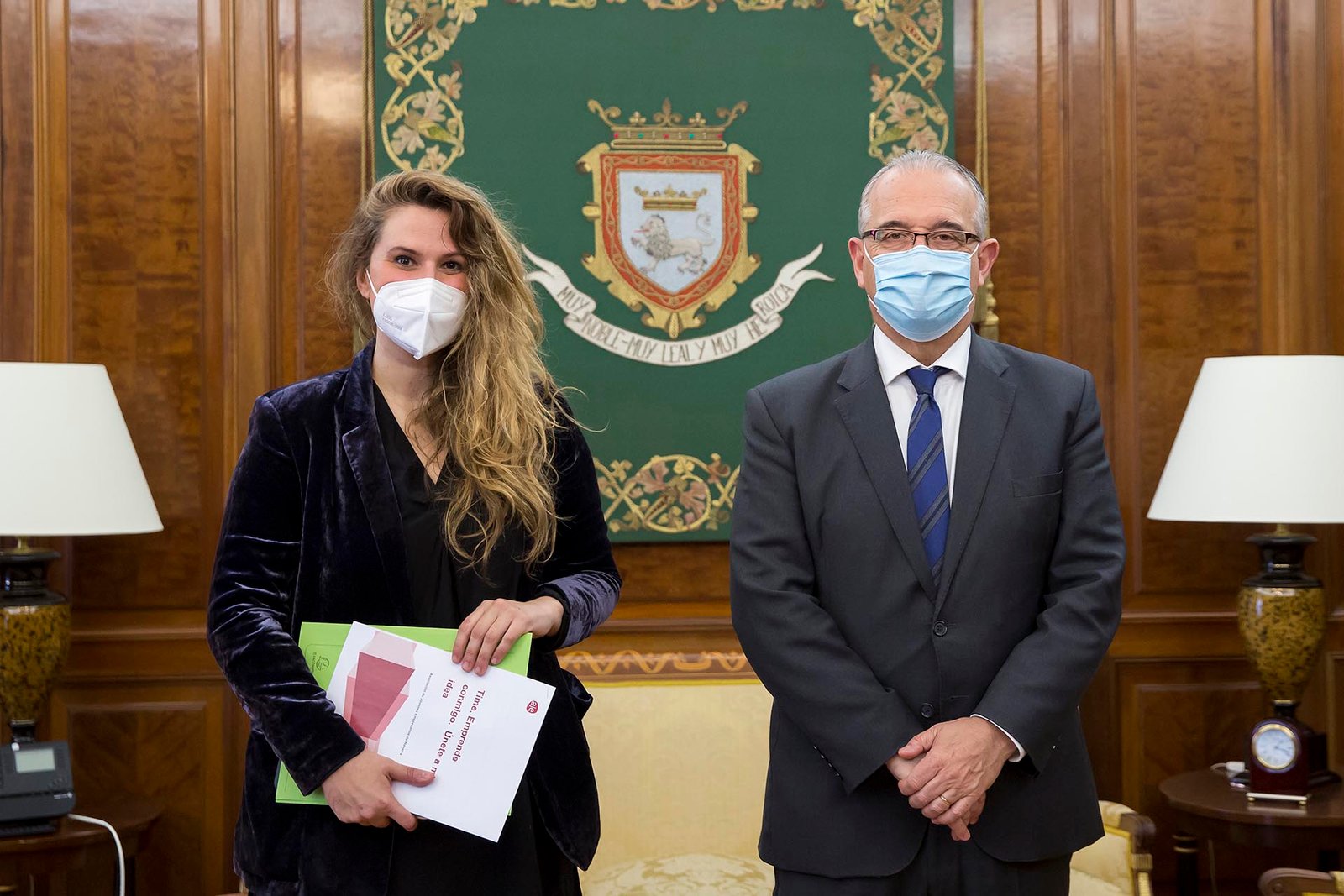 El alcalde de Pamplona, Enrique Maya, ha recibido este mediodía en su despacho a la recientemente elegida gerente de la Asociación de Jóvenes Empresarios de Navarra. En el encuentro, que ha servido de presentación, Adriana Eransus ha trasladado su intención de trabajar para potenciar el talento que hay en Navarra como herramienta para hacer frente a la complicada situación económica generada por la Covid-19.