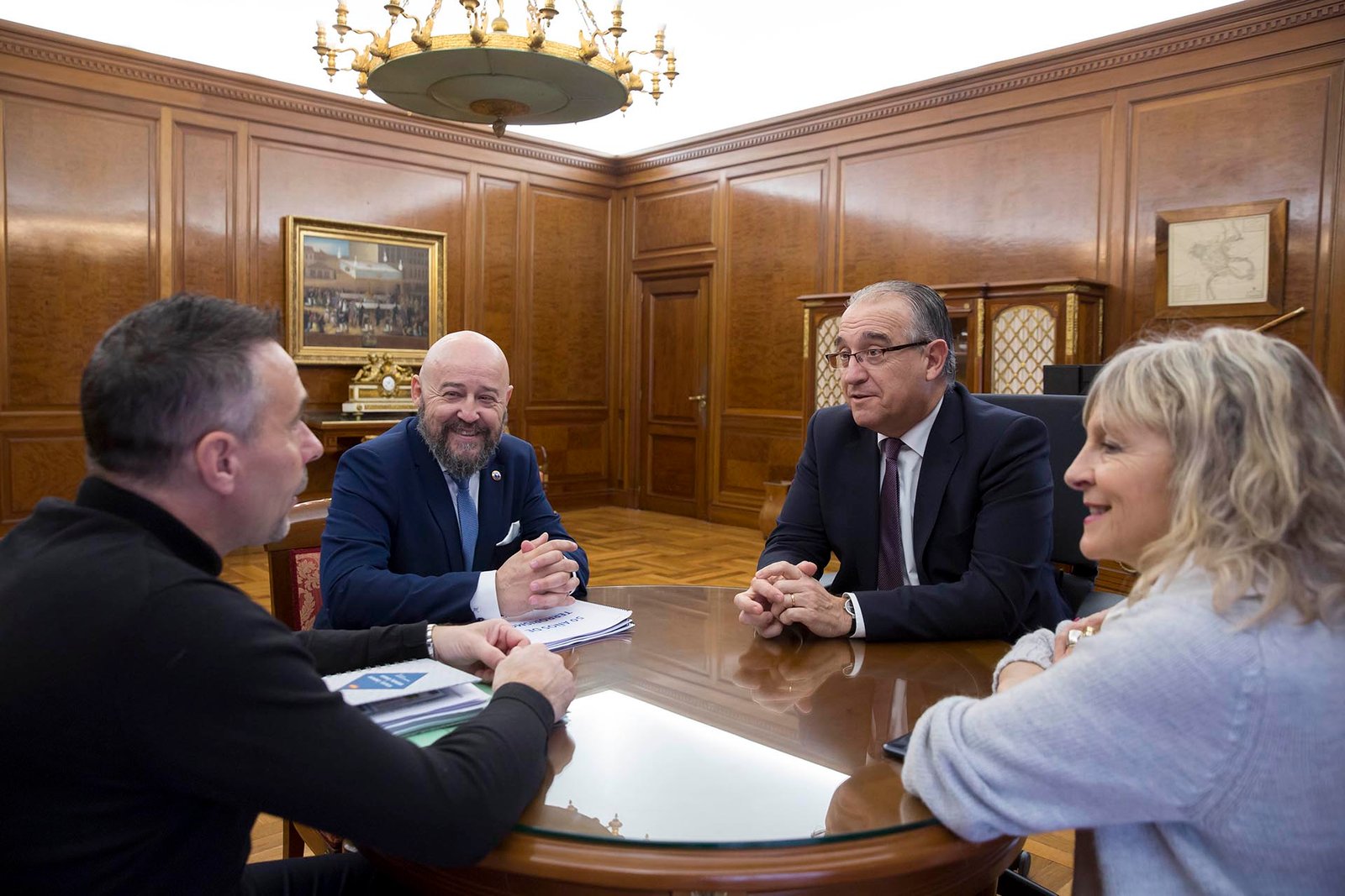 El alcalde de Pamplona, Enrique Maya, ha recibido hoy en su despacho de la Casa Consistorial a la Asociación de Víctimas del Terrorismo (AVT). En el encuentro han participado el delegado en Navarra de la AVT, Vicente Pigueiras, y el vicepresidente, Víctor Manuel López Palma, además de la concejala delegada de Servicios Sociales, Acción Comunitaria y Deporte, María Caballero.