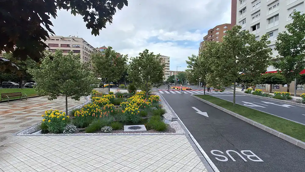 Están pendientes de ejecutar tres zonas más: en el Hotel Blanca de Navarra, después del paso peatonal con Pedro I, la zona 2 contará con dos sistemas de drenaje urbano sostenible (SUDS) de 25,51 metros cuadrados (antes del paso de cebra) y 40,75 metros cuadrados (después del paso de cebra); en este tramo se trasladará la zona de carga y descarga del hotel a la calle Pedro I. La zona verde 2, entre los números 39 y 41 de la avenida de Pío XII, sentido entrada, tendrá 137 metros cuadrados, por lo que se eliminarán 8 plaza de aparcamiento; y en la zona verde 3, en la intersección con la calle Iturrama, se ha transformado la isleta de protección carril bici en un SUD de 28,61 metros cuadrados.
