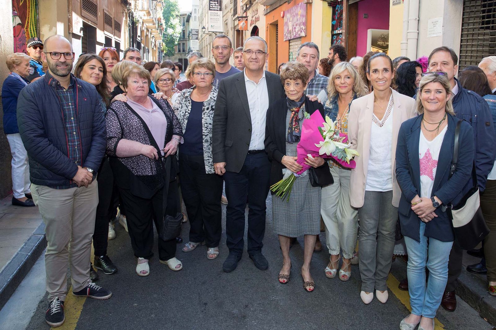 En el acto se ha podido asistir a la interpretación musical de la jota “Que hizo a san Fermín llorar” por parte de Jokin Zabalza (hijo del Iruña’ko también fallecido Joaquín Zabalza) acompañado por Roberto Elizalde y la jotera Maricruz Corral (la jota). Este reconocimiento de la ciudad a una persona que encarnó internacionalmente la imagen Pamplona se viene a unir al ya rendido por el Ayuntamiento en el año 2011 a otros dos componentes fallecidos de la misma formación musical: Joaquín Zabalza y Alberto Huarte. En su caso la placa, con la misma leyenda que la de hoy, es visible en la fachada del edificio de calle Mayor, 54.