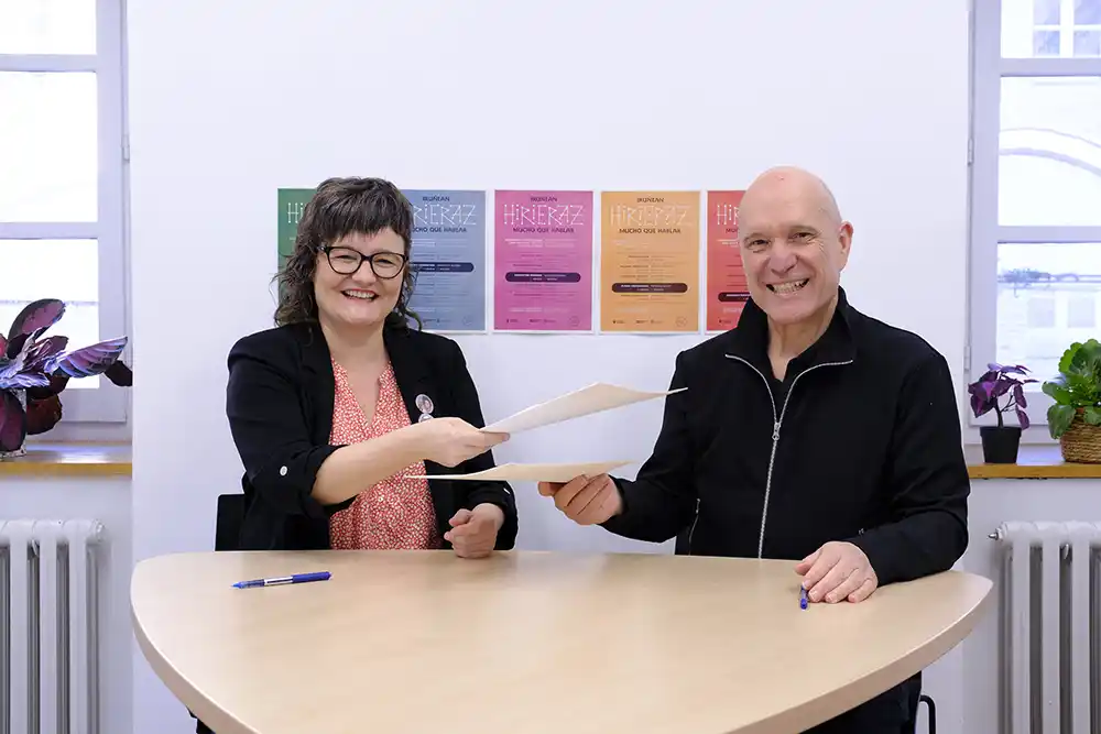 El Ayuntamiento de Pamplona y Soziolinguistika Klusterra, centro de investigación para la revitalización del euskera, han firmado este lunes un convenio de colaboración para realizar la IX Medición del Uso de las Lenguas en la Vía Pública de Pamplona, un estudio de carácter científico que permitirá obtener datos objetivos y actualizados sobre el uso real de los idiomas en la vida cotidiana de la ciudad. El convenio lo han rubricado la concejala de Educación, Participación Ciudadana y Euskera, Aitziber Campión Ganboa, e Imanol Larrea Mendizabal, en representación de Soziolinguistika Klusterra.