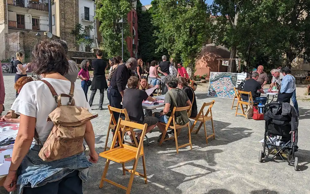 Desde su apertura, la plaza ha sido un refugio verde y multifuncional en medio de la intensa actividad urbana del Casco Antiguo. La plaza ha ido evolucionando como un punto de encuentro clave para el vecindario gracias a su huerta comunitaria, zonas infantiles, espacios de gimnasia, y lugar para asambleas vecinales y actividades festivas. La idea de este proceso es preservar y potenciar este valor, al tiempo que se abre a nuevas posibilidades que refuercen su carácter de oasis verde en uno de los barrios con menos espacios naturales de Pamplona.