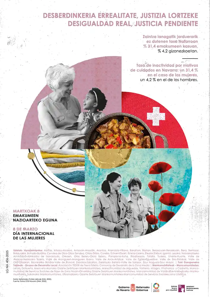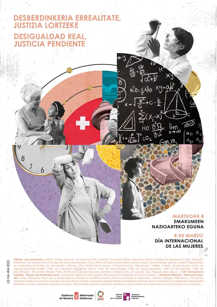 Pamplona celebrará este 8 de Marzo bajo el lema ‘Desigualdad real, justicia’ pendiente’, en referencia a que, aunque la igualdad formal está reconocida en leyes y normativas, aún no se ha alcanzado la igualdad real ya que las mujeres enfrentan barreras significativas en su vida diaria, al tener que realizar dobles y triples jornadas. El viernes 7 de marzo, a las 10.30 horas, el Consistorio reivindicará la jornada leyendo el texto elaborado por las técnicas de igualdad de las Entidades Locales de Navarra en la Plaza Consistorial. Esa declaración recibió el pasado 28 de febrero el respaldo de la Junta de Portavoces del Ayuntamiento de Pamplona y el 6 el Pleno la convertirá en declaración institucional del municipio.