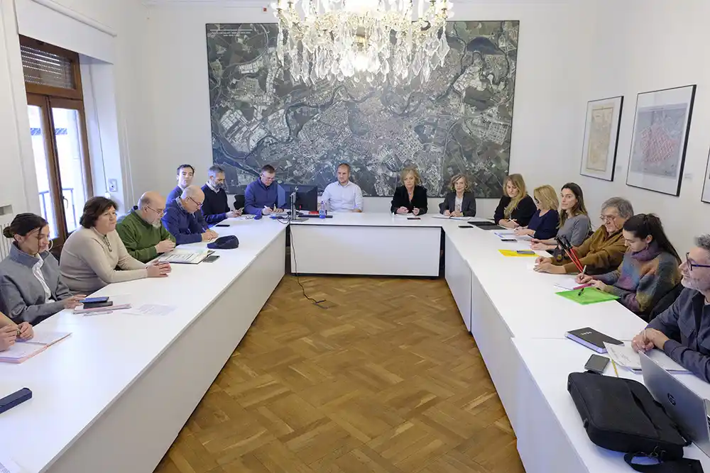 Esta mañana se ha reunido en la Casa Consistorial la Mesa Política de Comercio, el foro de carácter consultivo e informativo creado por el Ayuntamiento de Pamplona para analizar y proponer de forma coordinada y colaborativa acciones de impulso y fomento del sector comercial. Esta es la primera reunión de la mesa en 2026, por lo que en parte la sesión tenía previsto la revisión de objetivos para el nuevo año de este sector de importancia socioeconómica en la ciudad.