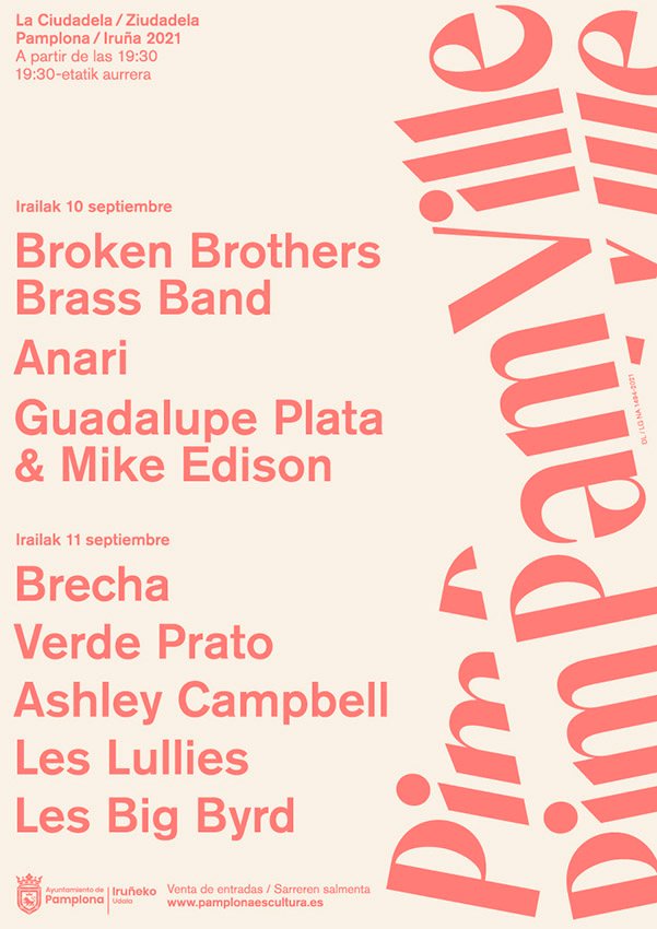 La quinta edición del festival Pim Pam Ville, musical urbano impulsado por el Ayuntamiento de Pamplona, volverá a celebrarse en la Ciudadela de Pamplona. Subirán al escenario los suecos Les Big Byrd, los franceses Les Lullies y la norteamericana Ahsley Campbell. Además, otro estadounidense, el neoyorquino Mike Edison se unirá a los jienenses Guadalupe Plata y la representación local estará conformada por Brecha y Broken Brothers Brass Band. A todos ellos se unirán la guipuzcoana Anari y la bilbaína Verde Prato.