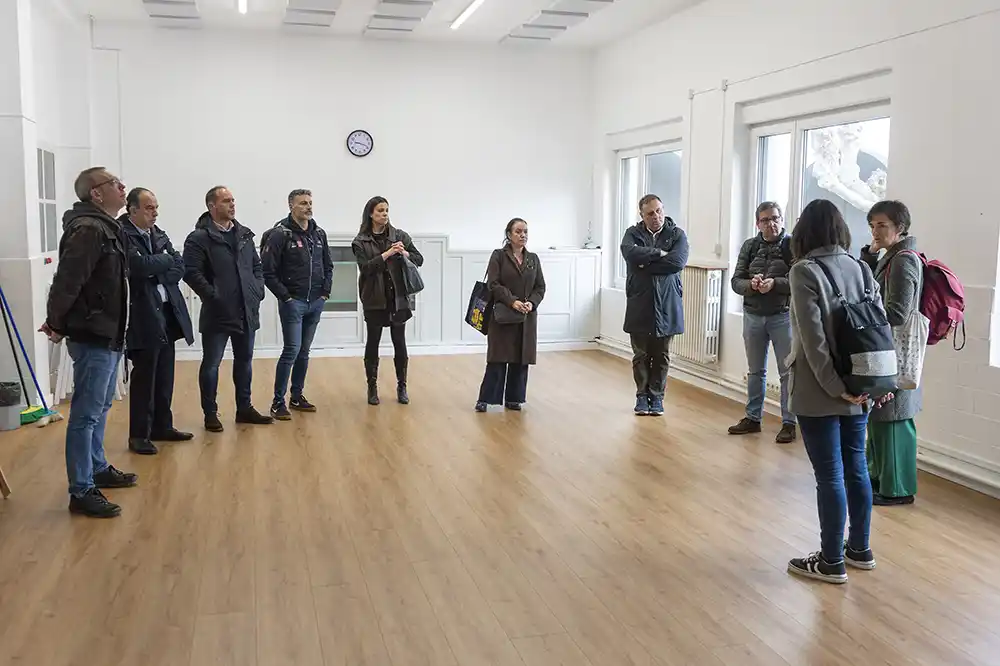 Los otros 83.229 euros restantes se han destinado a distintas intervenciones, tanto de carácter general, como la adecuación de wifi en al menos un local por barrio, como otras específicas de cada barrio. Por ejemplo, en la visita de esta mañana se ha podido ver la mejora del proyector y manejo del sistema de sonido en el salón de actos de Salesianas y los trabajos de sonorización de las salas de ese centro para mejorar la acústica y así amabilizar su uso, evitando ruidos y reverberaciones. Esta última intervención también se ha hecho en Karrikagune (San Jorge). Desde el centro de San Jorge se ha abordado, además, el cambio de luminarias y para mejorar también el entorno del centro se ha realizado el mural colaborativo “Somos barrio/ auzoak gara”, a cargo de asociaciones del barrio en Gridillas