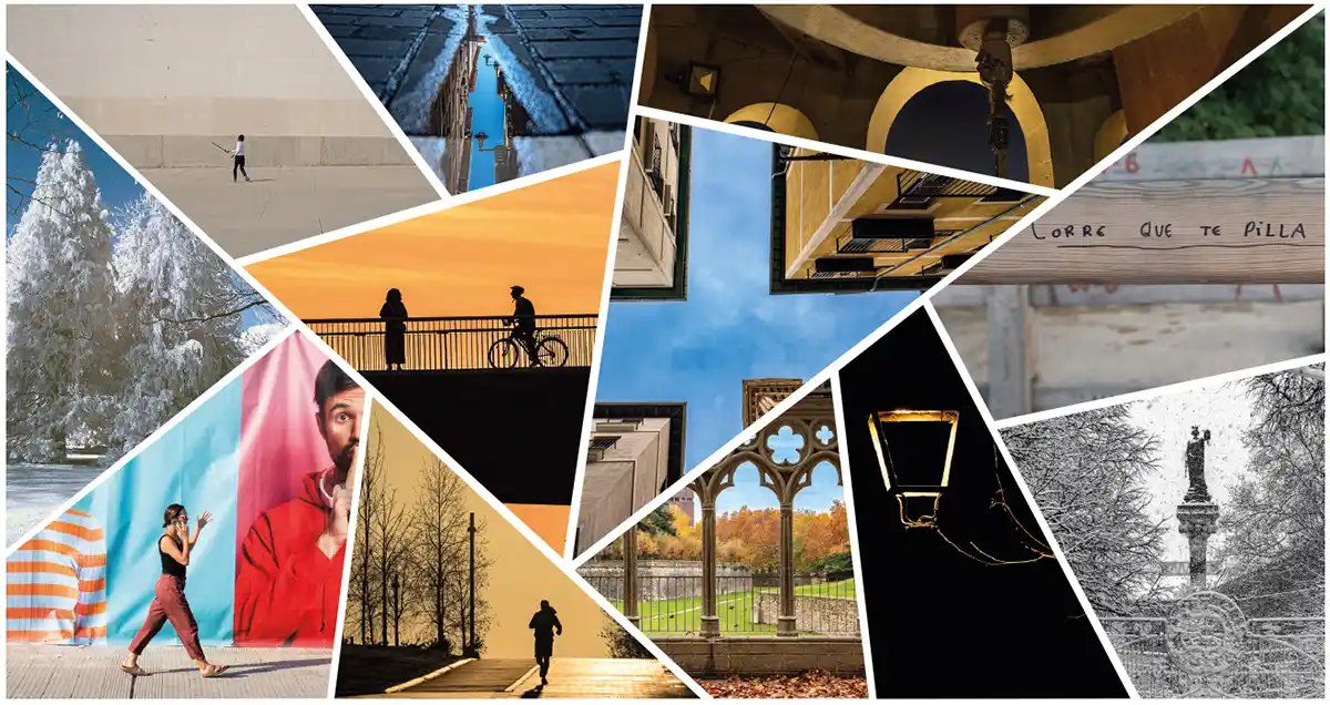 Cada mes del calendario está ilustrado con una imagen presentada al concurso de fotografía Enfoca Pamplona. De entre las 479 presentadas, se han seleccionado doce, una para cada mes, que recogen distintos momentos y espacios de Pamplona. Los autores de las instantáneas son Antonio Lana Salinas (‘Cencellada’, mes de enero), Pedro Pileño Malvar (‘El Soto’, febrero), Daniel Andion Espinal (‘Lindatxikia’, marzo), José Luis Zubiri Munarriz (‘La Campana Mayor’, abril), Iñigo Aranguren Osinaga (‘La cita’, mayo), Leyre Andión Martínez (‘Calderería con Javier’, junio y ‘Otoño con vistas’, octubre), Juan José Méndez Palo (‘Corre’, julio), Santiago Bañón Irujo (‘¡Silencio!’, agosto), Daniel Andion Espinal (‘A última hora’, septiembre), Endika Donamaria Azparren (‘Neguko gau ilunak / Oscuras noches de invierno’, noviembre) y Jose Javier Rui Zubikoa (‘Ventana foral’, diciembre).