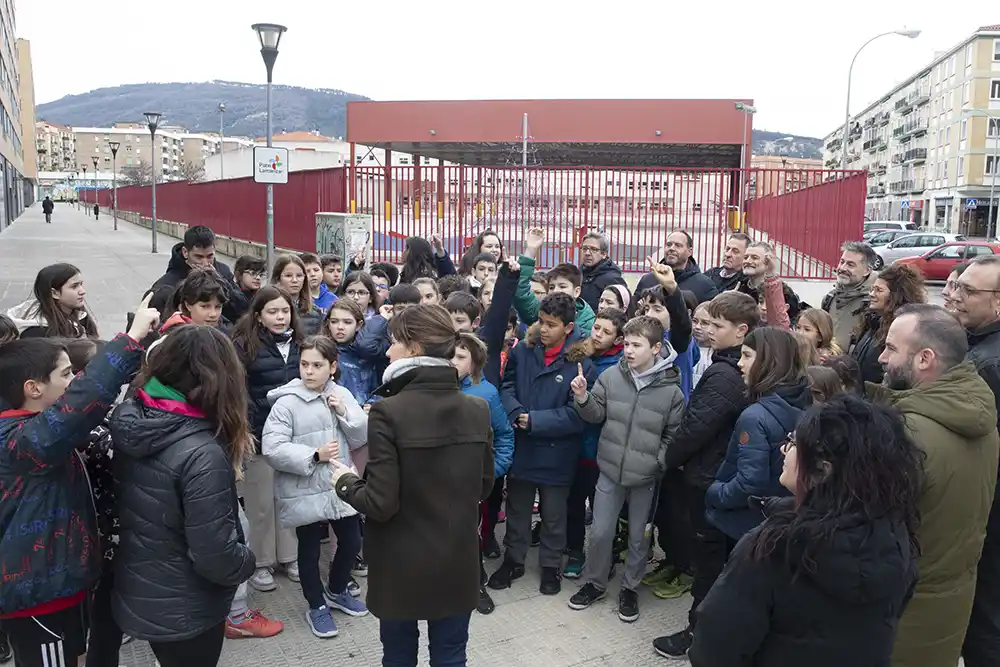 20 minutos o menos. Es lo que tardará el alumnado del C.P. Patxi Larrainzar en llegar a su centro escolar andando, en patinete o en bicicleta. Y por el camino, los menores harán ejercicio, conocerán su entorno, socializarán, aprenderán circulación vial y, siempre, lo harán de forma segura. Esta mañana la Comisión de Asuntos Ciudadanos del Ayuntamiento de Pamplona ha visitado las obras de señalización y calmado de tráfico realizadas en torno a cuatro Caminos Escolares Seguros que llegan hasta el centro escolar y que, en total, superan 3 kilómetros de recorridos. Las aulas de 5º de Primeria del centro les han enseñado a concejalas y concejalas sobre el terreno cómo funciona el sistema.