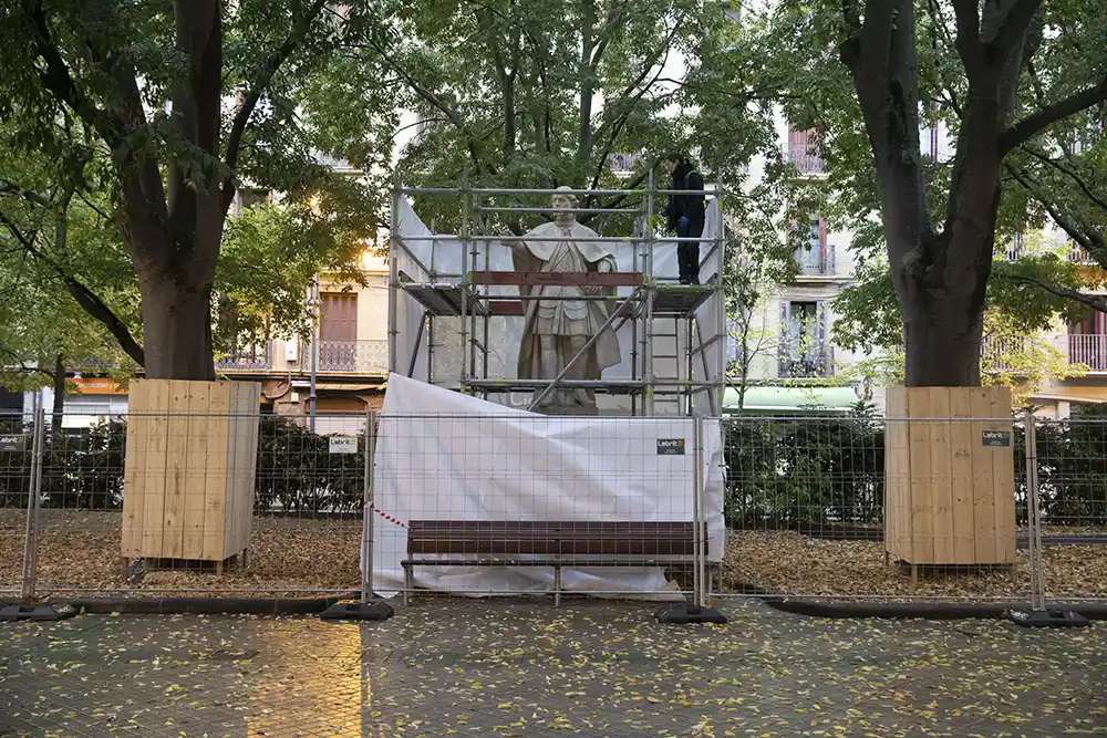 La previsión que manejan el Ayuntamiento de Pamplona y la empresa Sabbia Conservación y Restauración SL, que realiza el traslado, es que para el inicio de la Navidad no haya ninguna estatua en el paseo de Sarasate. Desde el pasado mes de septiembre, se han ejecutado los trabajos de limpieza y de restauración, además de los trabajos preparatorios para el traslado a la Taconera.