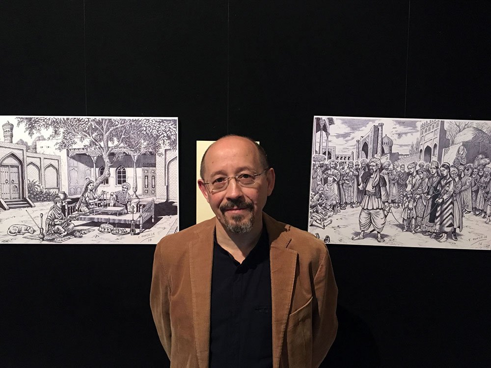 Home Ayto Pamplona El pamplonés Fernando Poncela traslada con sus dibujos a vivir otras épocas y otros lugares desde el zaguán del Palacio del Condestable