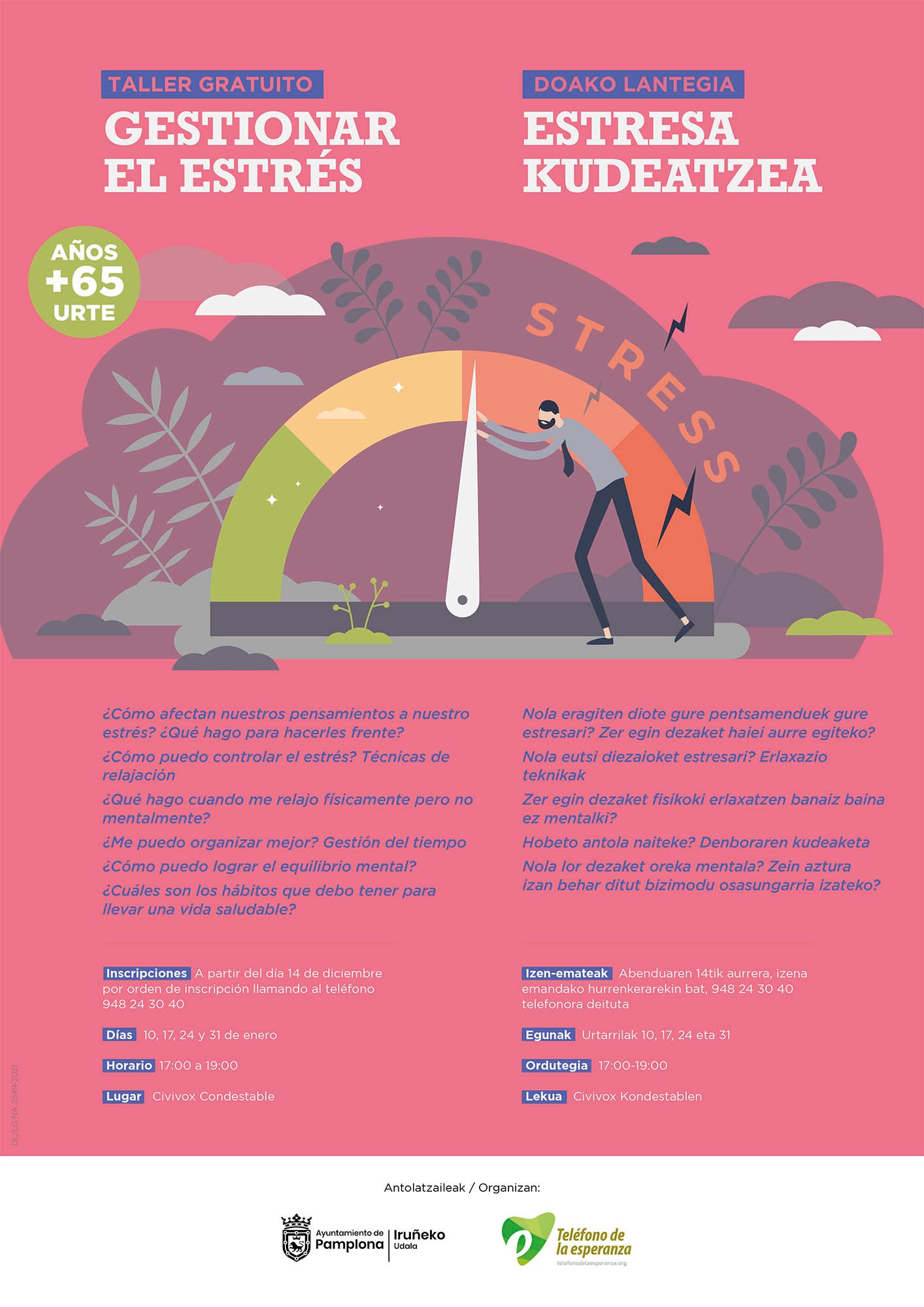 Home Ayto Pamplona Enero mantendrá el programa de apoyo emocional a las personas mayores de 65 años con un taller de ocho horas para aprender a ‘Gestionar el estrés’