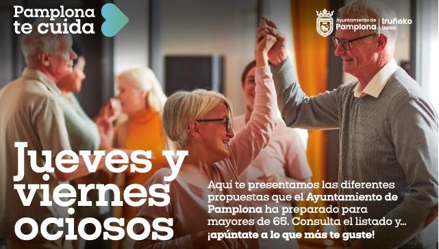 El Ayuntamiento de Pamplona ha programado para los meses de noviembre y diciembre un total de 24 actividades de bienestar personal y de ocio dentro del programa municipal ‘Jueves y viernes ociosos’. Están dirigidas a personas mayores de 65 años empadronadas en Pamplona. Las inscripciones se pueden realizar desde este miércoles en el teléfono 010 – 948 420 100, tienen un precio de 2,5 euros y se ofertan 15 plazas para cada una de las actividades.