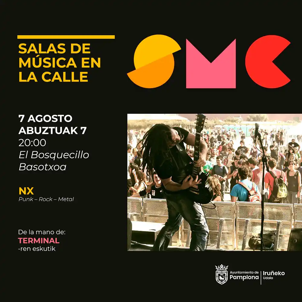 La calle Bosquecillo acoge este miércoles un nuevo concierto del ciclo ‘Salas de Música en la Calle’, organizado por el Ayuntamiento de Pamplona. A partir de las 20 horas y con entrada gratuita, actúa el grupo de rock, punk y metal en euskera NX, que llega de la mano de la sala Terminal. El escenario se ubica en el espacio peatonal entre Bosquecillo y Taconera, y cuenta con servicio de hostelería.