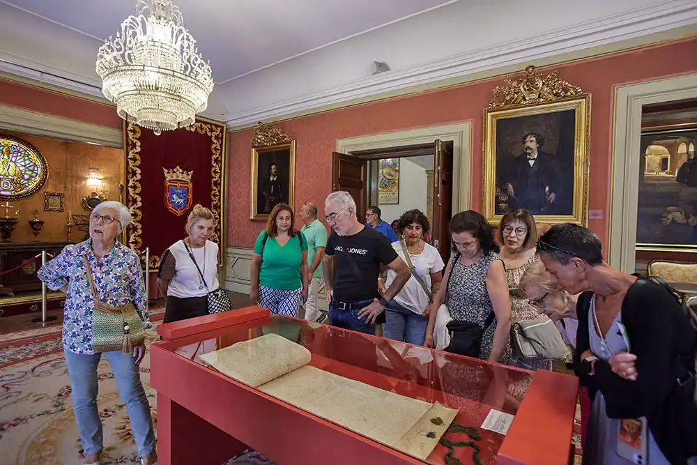 Se conocerá el patrimonio histórico y artístico de la Casa Consistorial a través de los cuadros, fotografías, carteles y documentos, como el original del Privilegio de la Unión de 1423, que se exhibirá en el Salón de Recepciones. Una copia se puede ver durante todo el año en el zaguán, junto a otros elementos significativos y distintivos de Pamplona como las mazas de plata o las llaves de la ciudad.