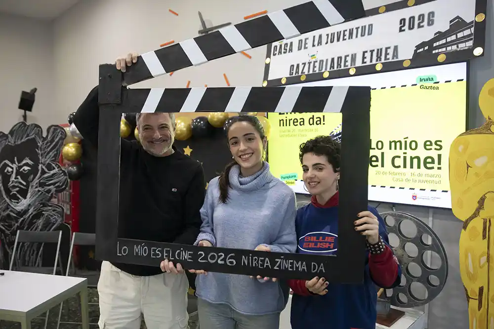 La Casa de la Juventud del Ayuntamiento de Pamplona se centra en el séptimo arte, del 20 de febrero al 16 de marzo, con el ciclo “Nirea zinema da! Lo mío es el cine!”. Este programa especial combina actividades participativas, encuentros con profesionales del sector y proyecciones cinematográficas, en un ambiente festivo y creativo, que coincide con dos fechas clave para las personas aficionadas al cine: la celebración de los Premios Goya, el sábado 28 de febrero, y los Premios Óscar, el lunes 16 de marzo.