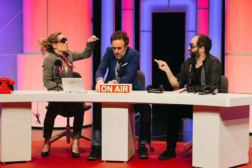El argumento parte de un supuesto programa de radio que realizan en directo, desde el teatro, dos locutores y un técnico. El programa tiene serios problemas de audiencia, hay pocas llamadas de oyentes, etc. Los protagonistas sólo quieren un programa sin complicaciones pero, viendo la situación, para evitar el despido y hacer ver que todo funciona con normalidad, deciden interactuar con el público del teatro, o bien fingir que reciben llamadas, adoptando ellos mismos el papel de falsos oyentes. Cada vez que simulan ser un nuevo personaje, el contenido se les va de las manos y acaban abordando temas de actualidad en clave de humor, por lo que los reproches se multiplican y la situación de caos también.