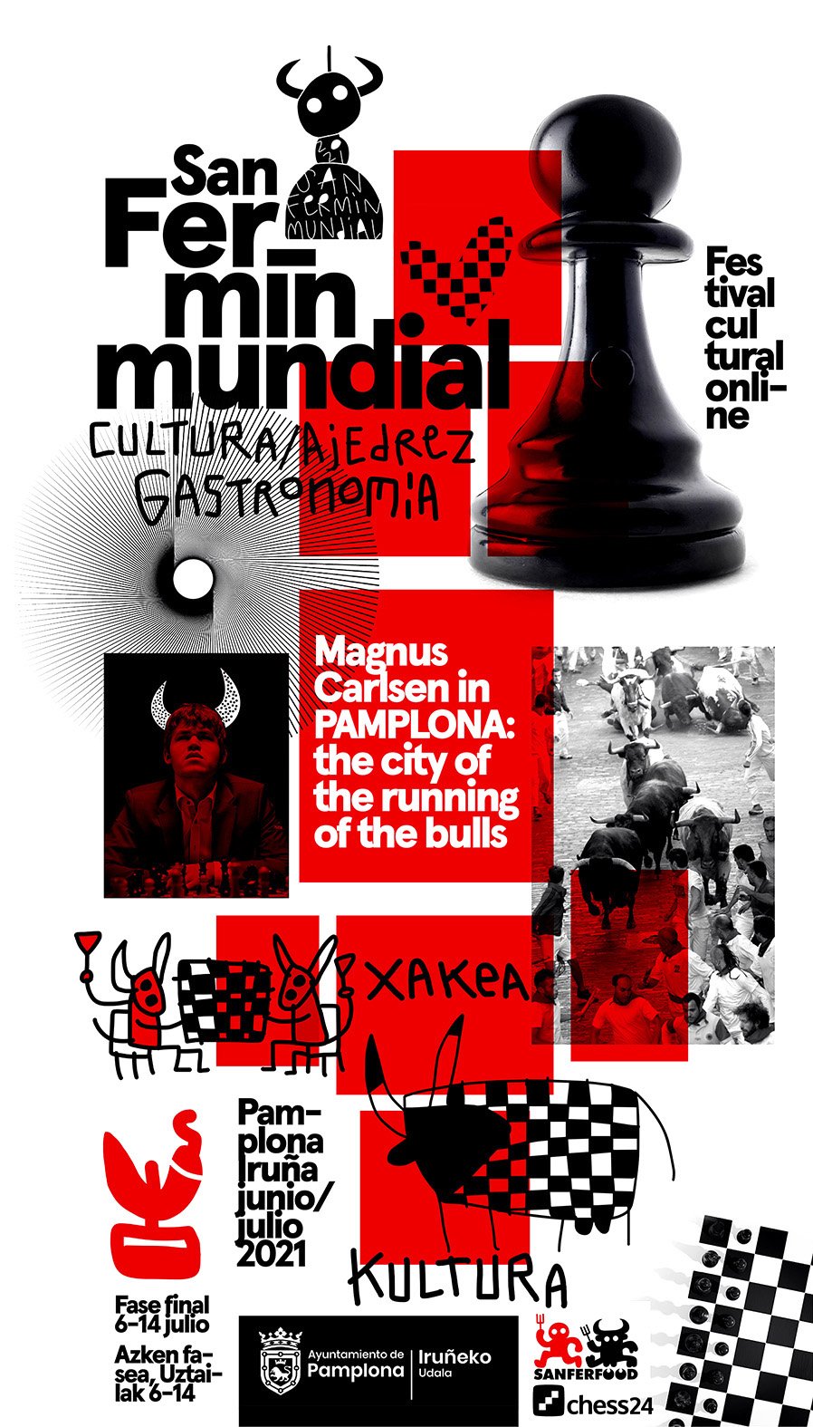 El torneo se organiza con cuatro fases clasificatorias, algunas abiertas y otras con grandes maestros internacionales. Del 6 al 11 de julio se celebrarán las finales, quedando una persona ganadora por fase. Las 4 personas clasificadas competirán los días 13 y 14 de julio contra otras 4 invitadas de la élite mundial. Entre estas últimas estará incluido Magnus Carlsen, actual campeón mundial y considerado como el mejor jugador de ajedrez de todos los tiempos, que jugará en directo desde Pamplona.