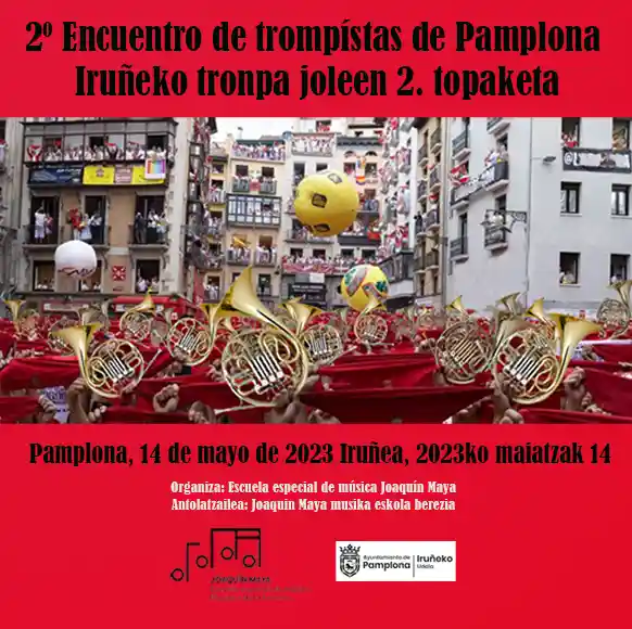 La Escuela Especial de Música Joaquín Maya acoge este domingo el II Encuentro de Trompas de Pamplona. Trompistas de la Comarca de Pamplona y de otras localidades se reunirán para dar visibilidad a su instrumento. Entre ellos, está confirmada la presencia de músicos profesionales de la Orquesta Sinfónica de Navarra (OSN), de la Banda de Música de Pamplona La Pamplonesa o la banda municipal de Barakaldo.