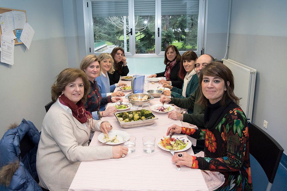 La comida ha tenido lugar al finalizar una reunión en la que se ha abordado la obra en la sala de calderas del centro de Mendebaldea, la organización de jornadas de formación trimestrales para atender todas las solicitudes de visitas que se reciben implantando una tasa de inscripción por cada persona participante y el precio de venta al público de la última publicación que se ha editado. El último punto del orden del día hacía referencia a la información sobre el proyecto Erasmus Plus, en el que participa la Escuela Infantil Hello Buztintxuri.