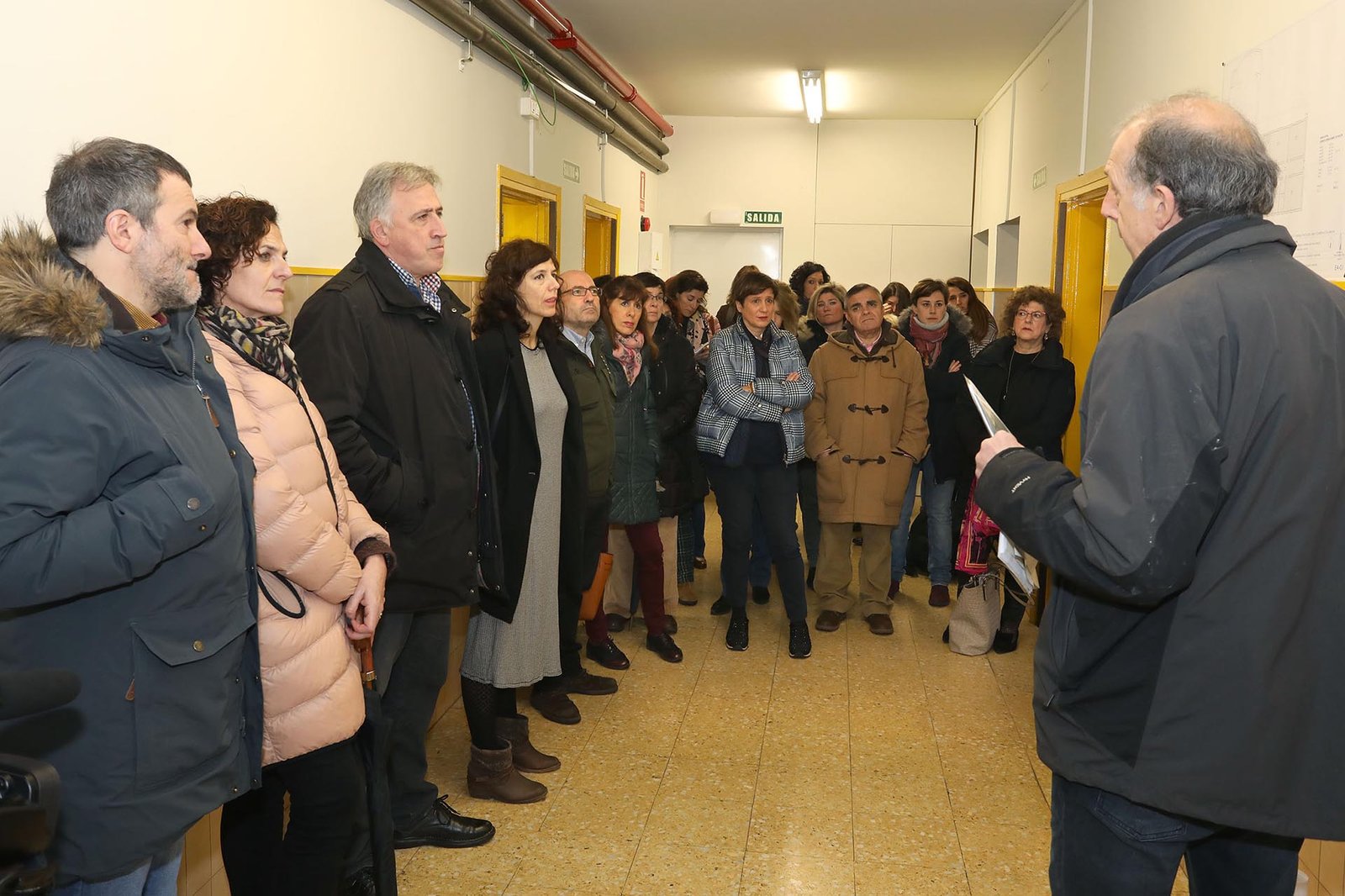 Ya en el interior, se llevará a cabo una renovación completa de los aseos, ejecutando uno para mujeres y otro accesible, con nueva instalación de abastecimiento, saneamiento y electricidad. Se eliminará el pequeño vestíbulo existente en el pasillo junto a los aseos y se renovarán carpinterías, tarimas o puertas. Se prevé el lijado o barnizado de todas las tarimas de las aulas, el pulido del suelo de terrazo del pasillo y de la zona de entrada, el repintado de paredes y techos, el lacado de todas las carpinterías de madera, el repintado de los radiadores, la remodelación de las carpinterías de aluminio con RPT existente en el acceso al edificio y la ejecución de nueva carpintería acristalada en el pasillo.