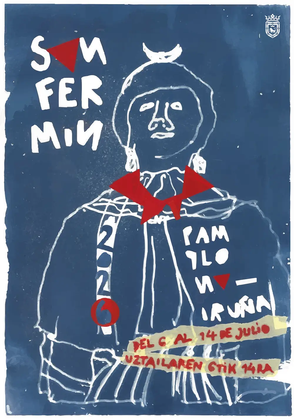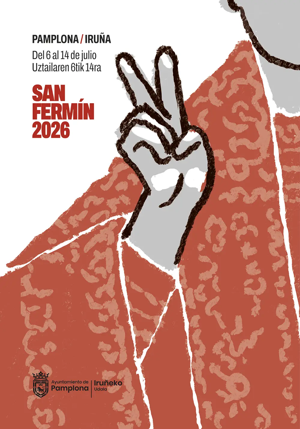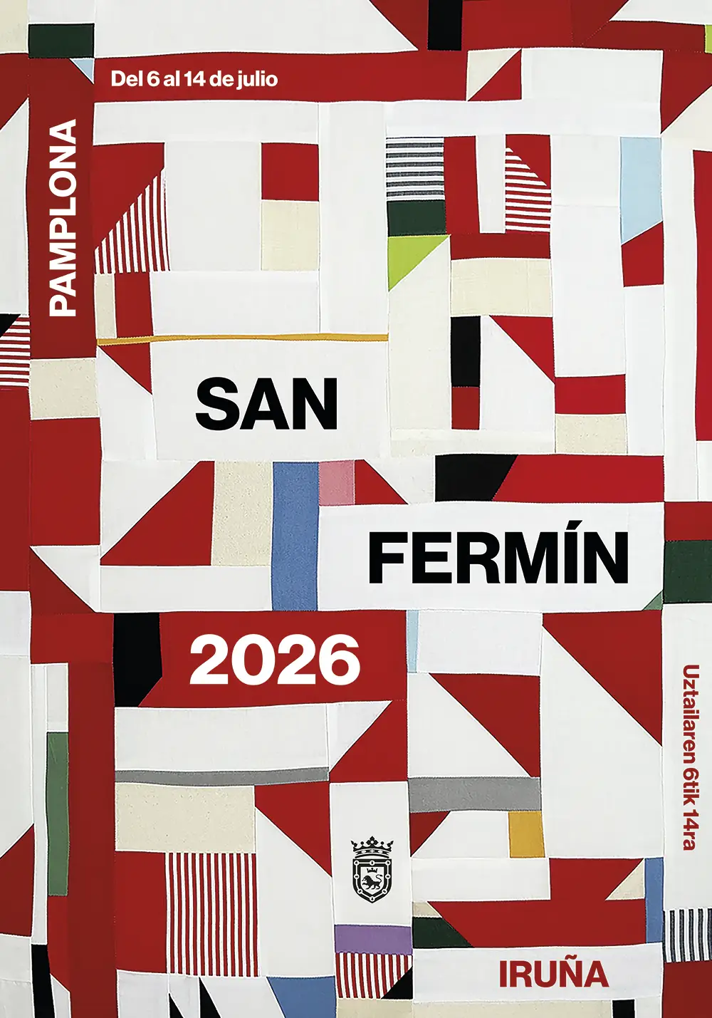 - El cartel representa los Sanfermines como un tejido vivo. A través de retales de diversas formas y colores simboliza la unión entre diferentes, la costura de diversos momentos, espacios y personas. Lejos de lo digital, las texturas aportan calidez y remiten a la vestimenta sanferminera. Una propuesta abierta que invita a la mirada pausada y a la libre interpretación.