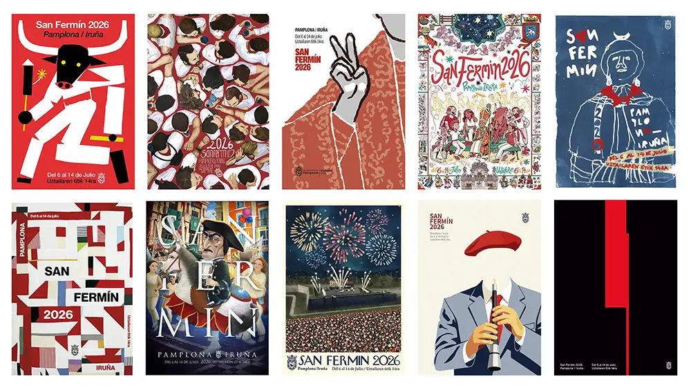 Las personas empadronadas en Pamplona ya pueden votar el cartel anunciador de San Fermín 2026. Cuando faltan poco más de dos meses para el inicio de las fiestas, ya se conocen los diez carteles seleccionados por el jurado técnico, entre los 488 presentados. Las diez propuestas, todas diferentes, se pueden visitar en el Palacio del Condestable y están disponibles en las páginas web www.pamplona.es y www.pamplonaescultura.es.