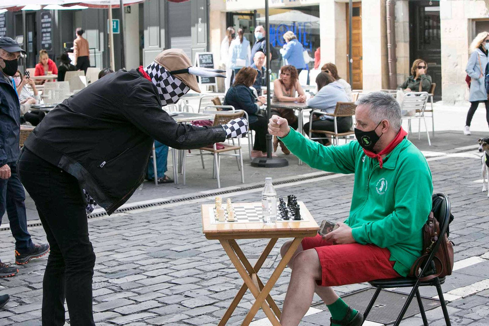 Los 6 grandes ajedrecistas son Pepe Cuenca, Rey Enigma, El Divis y Alexandra Prado, y los jugadores locales Daniel Zamarbide y Eihartze Buiza. Los 3 grandes maestros se han colocado en las zonas más complicadas del Encierro: en Plaza Consistorial hasta curva de Mercaderes se encuentra Rey Enigma; en el segundo tramo de Estafeta El Divis y en el callejón y la Plaza de Toros está jugando Pepe Cuenca.