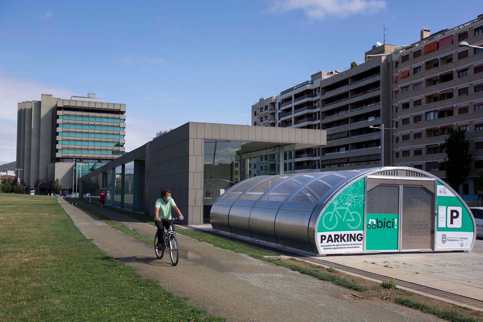 El impulso a la movilidad ciclista en la ciudad a través de carriles bici y aparcamientos para bicicletas, forma parte de las líneas de trabajo de ‘Go Green Pamplona’, la Estrategia de Transición Energética y Cambio Climático de la ciudad, que busca como principal objetivo una reducción drástica de las emisiones contaminantes. En estos meses de verano, además de la instalación de estas dotaciones de aparcamientos protegidos, se están ejecutando en Pamplona 3,2 Km de infraestructuras ciclables a través de las intervenciones de Yanguas y Miranda, avenida del Ejército y avenida de Bayona, eje María Auxiliadora en Txantrea, y eje Doctor Juaristi en San Jorge.