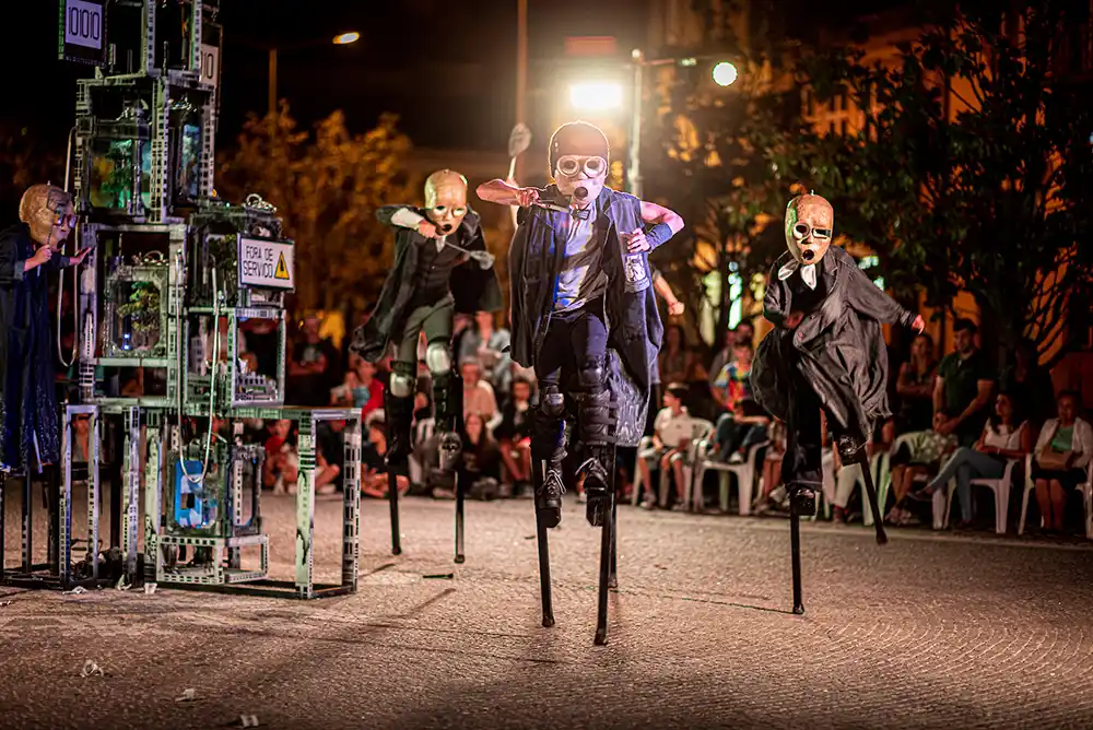 La Compañia PIA Projectos de Intervenção Artística, fue fundada en mayo de 2002, en Pinhal Novo (Portugal), como una plataforma profesional dirigido para las Artes Performativas de Calle. De carácter multidisciplinar, las creaciones de esta compañía abordan el teatro físico, el lenguaje corporal ilustrado por las formas animadas -como movimiento primordial y base para la dramaturgia- y el nuevo circo, utilizando técnicas aéreas y, en particular, los zancos.
